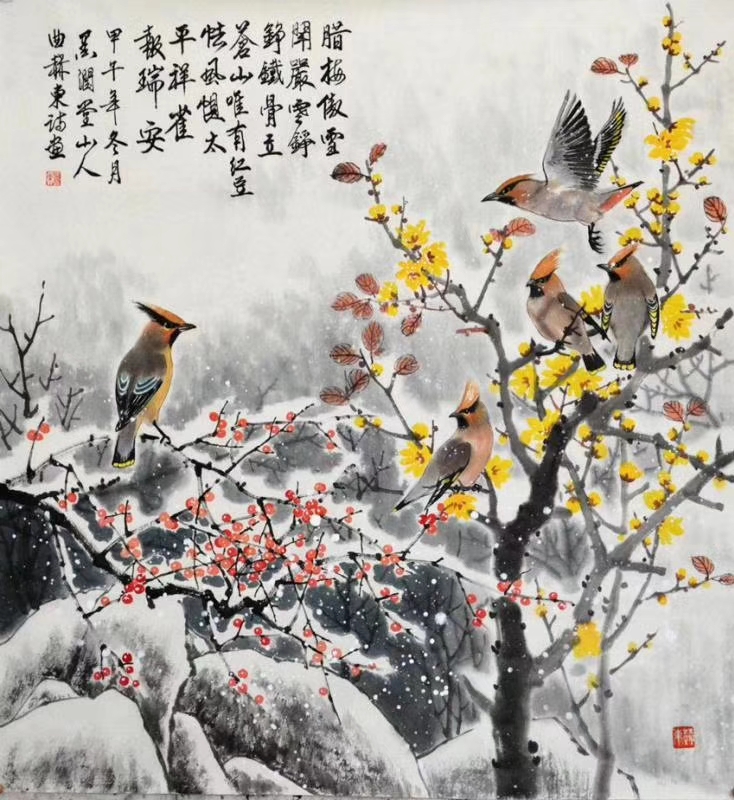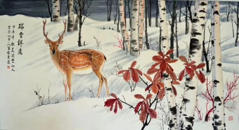 曲赫东老师诗书画艺术瑞雪祥鹿