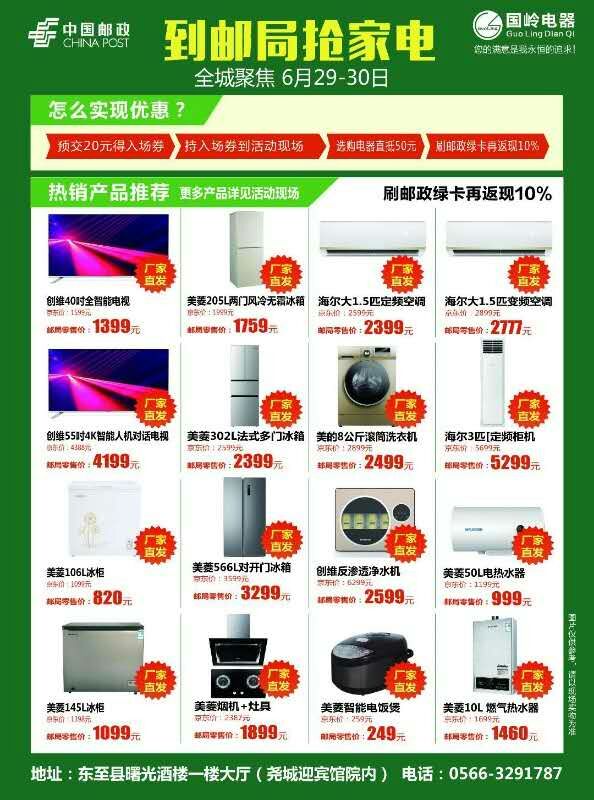 特价家电,邮政直销(东至大渡口邮储银行 高兰芳)