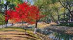 初冬武汉解放公园杉树林的赭色剪影