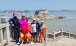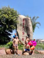 武汉游泳爱好者登上“万里长江第一阁”鄂州观音阁