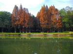 武汉冬日里橘红的杉树惹人爱
