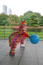 著名江城轮滑小丑卡卡着盛装重返汉口江滩献艺并与轮滑和舞龙爱好者相聚