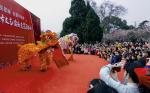 辛丑年新春、武汉梅花园里舞动的雄狮欢腾跳跃、辗转腾挪闹新春