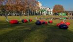 艺术家在武汉石门峰纪念公园的生态雕塑作品吸引众多观众前往欣赏