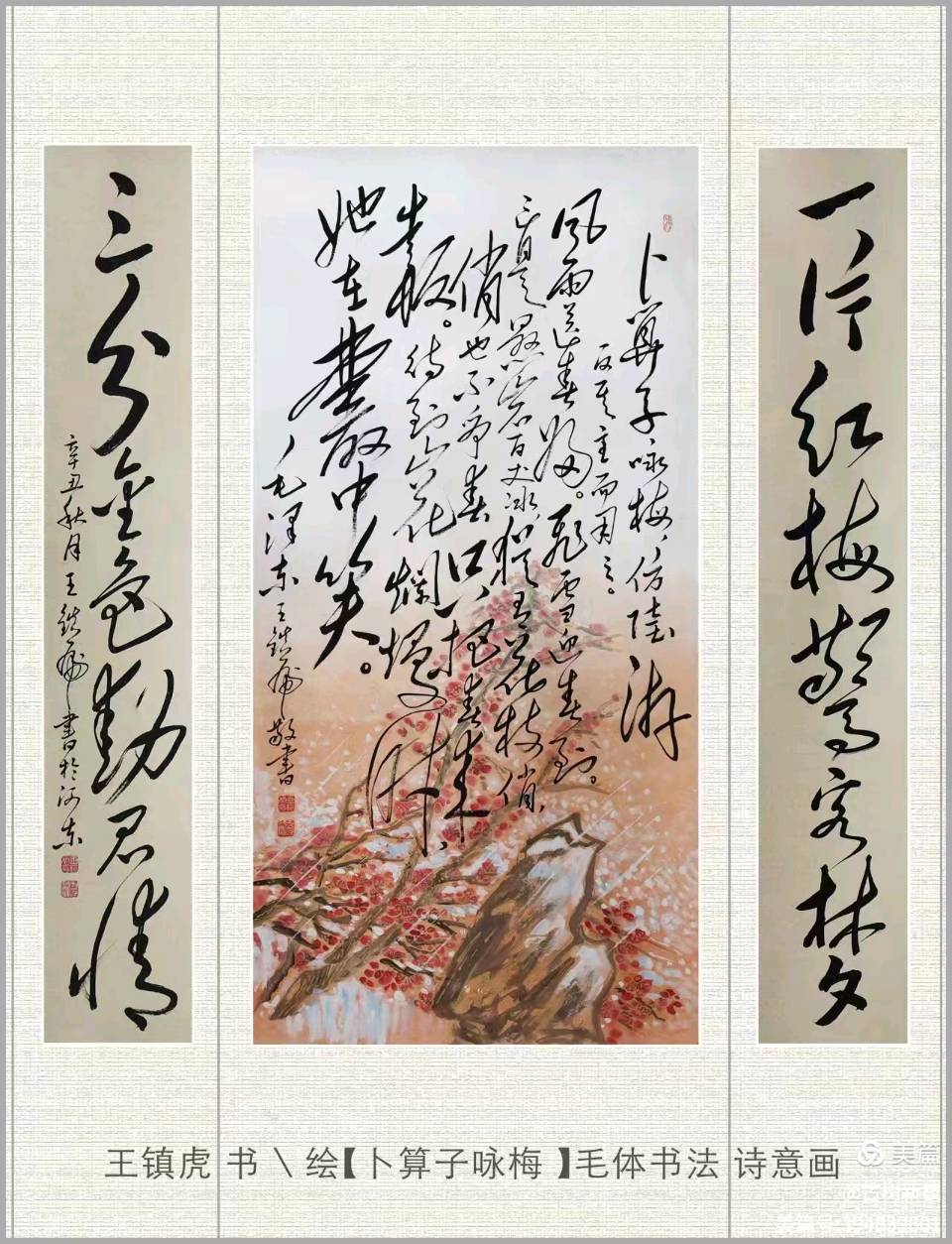 王镇虎毛体书法诗意画《卜算子•咏梅》赏析