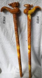 王德埙:春秋时期玉鸠杖 龙雀杖一对