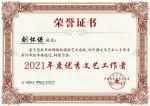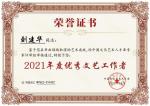 书法家刘建华荣获“2021年度优秀文艺工作者”荣誉称号