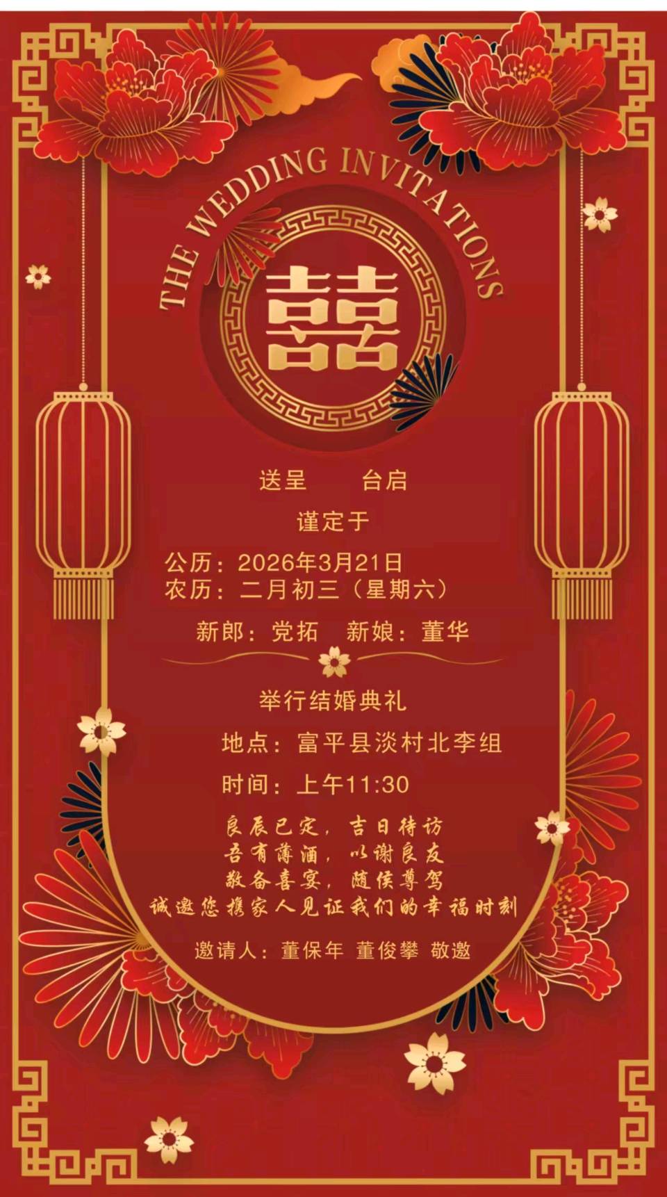 【佳偶天成】七律·侄女董华出阁婚礼志禧 作者:董俊青(青海西宁)