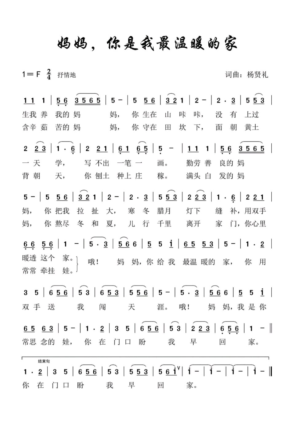 《妈妈,你是我最温暖的家》作词:杨贤礼