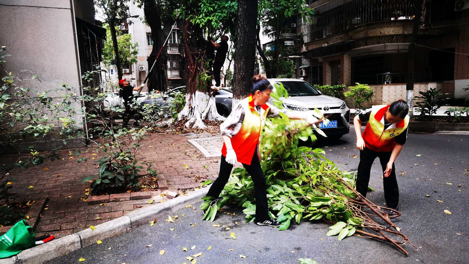 消除隐患剪树枝 美化环境进社区