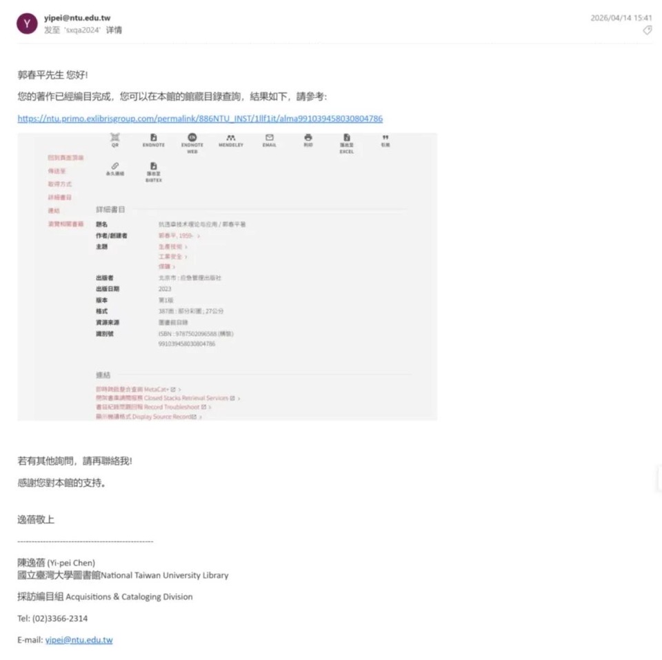 山西专家专著再入世界名校!国务院特贴专家郭春平《抗违章技术理论与应用》被台湾大学收藏