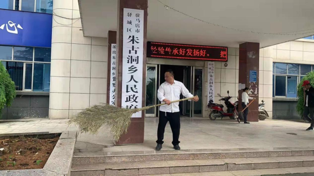 驿城区朱古洞乡组织全体机关干部开展卫生大扫除活动