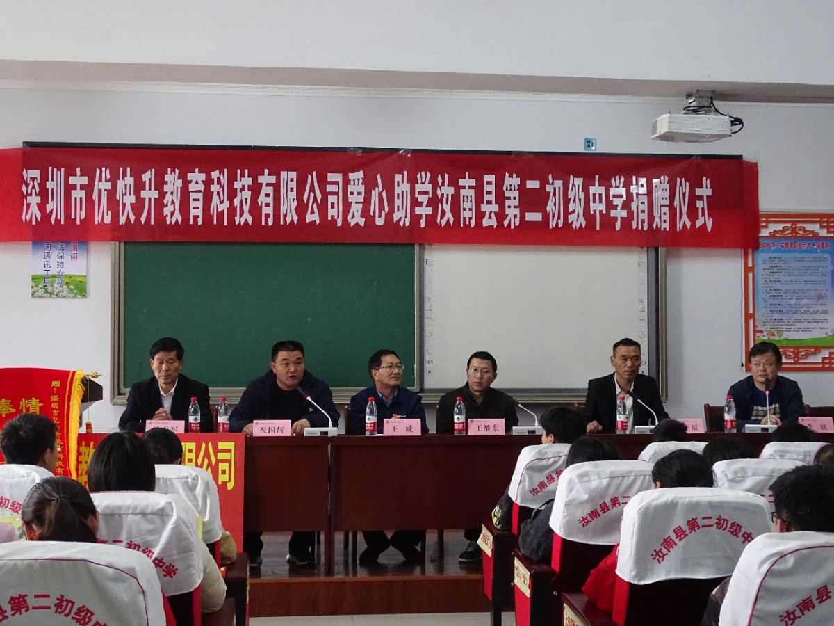 深圳市优快升教育科技有限公司爱心助学捐赠仪式在汝南县第二初级中学隆重举办