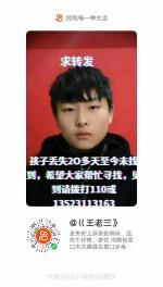 紧急寻人!寻找离家25天未归的河南周口市太康县五里口乡范楼大队少年王聪,求转发扩散帮寻