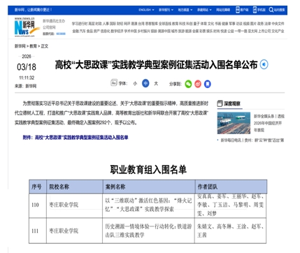 枣庄职业学院两案例入选全国高校“大思政课”实践教学典型案例