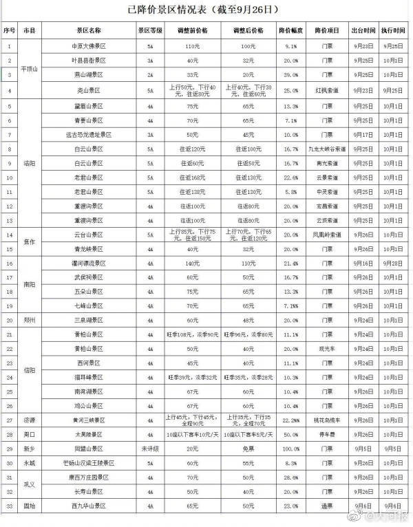 好消息!河南25家景区宣布降价!