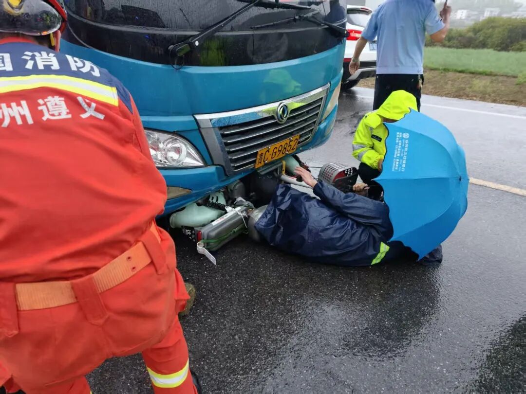 遵义绥阳:老人被压车头底部 消防紧急救援脱险