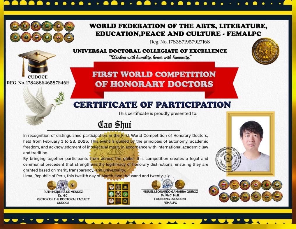 海外头条:中国诗人曹谁被联合国艺术文学教育和平文化联合会授予荣誉文学博士学位