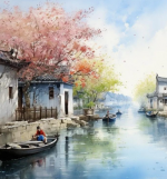 【春品古韵】夕阳流水推篷坐,翠色随人欲上船 版主║作者║阿春(辽宁)6101