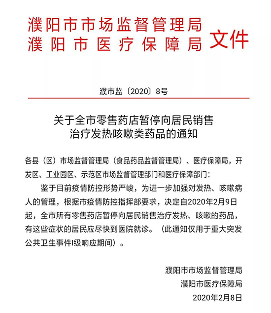 紧急通知!明日起,河南这个城市的药店暂停销售发烧咳嗽药!