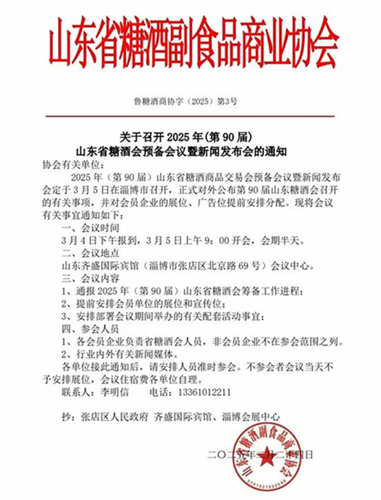 2025年春季(第90届)山东省糖酒会将于4月19—21日在淄博举行