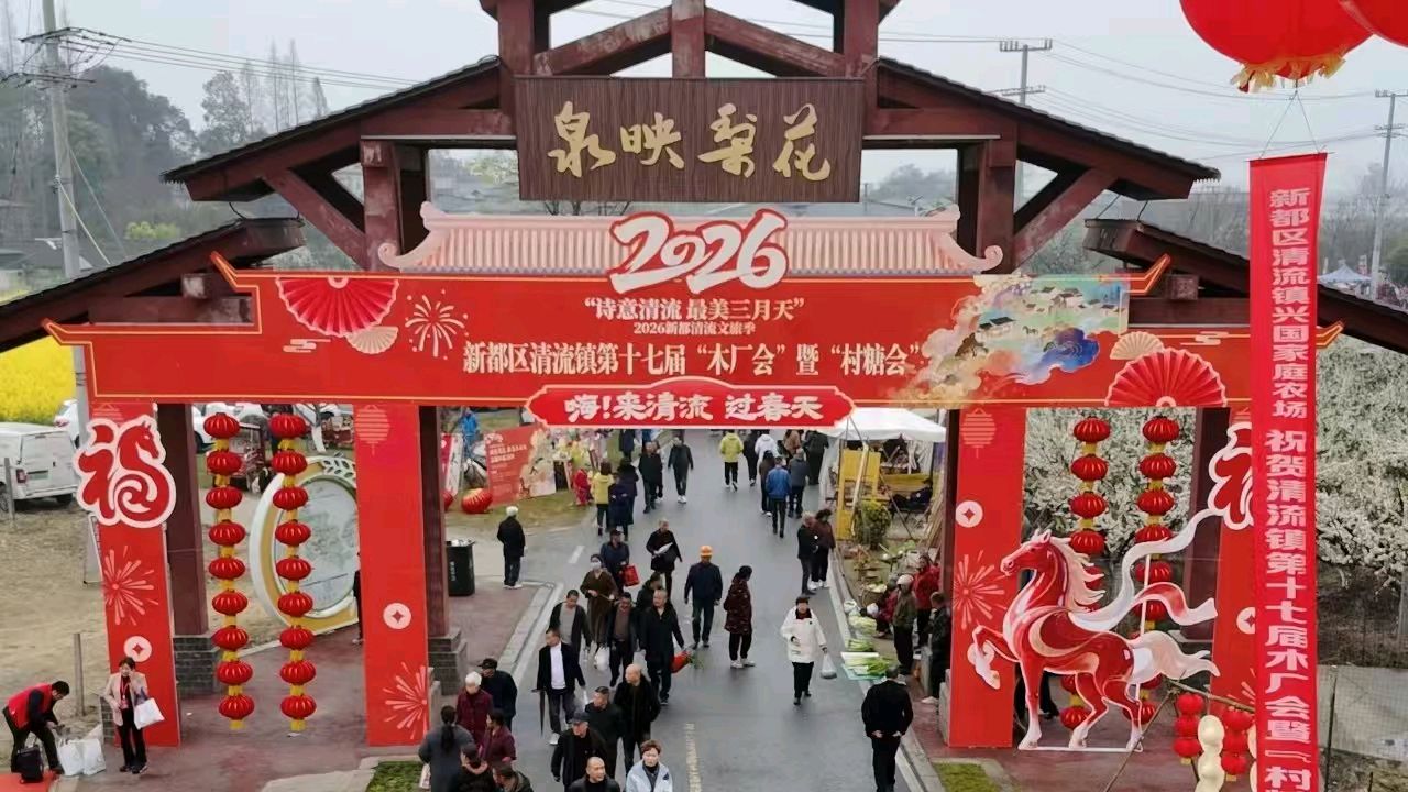 笔墨融药香 梨花映健康_新都区第二人民医院联合新都区新繁书画院、社区教育高秋名师工作室亮相新都区清流镇“木厂会”暨“村糖会”