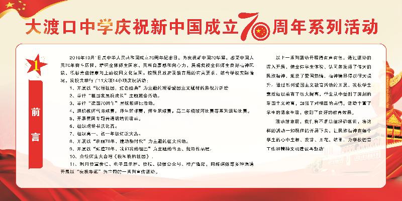 庆典蕴情生古香.东至大渡口中学举行庆祝共和国70华诞系列庆典展