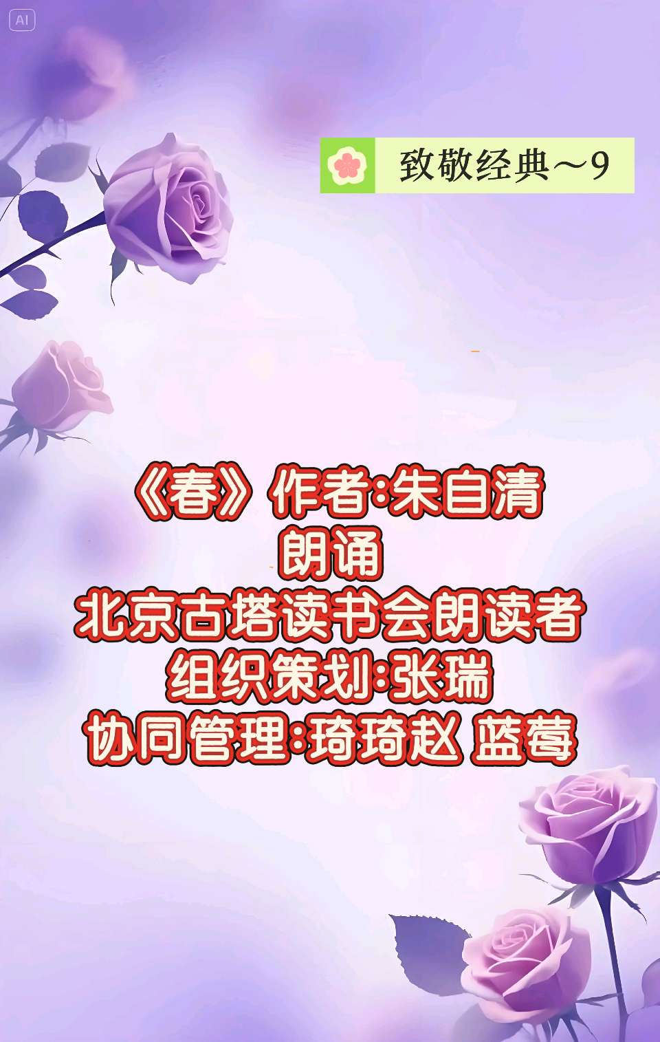 北京古塔读书会 ‖ 致敬经典第九期《致橡树》作者/舒婷 朗诵/北京古塔读书会朗读者