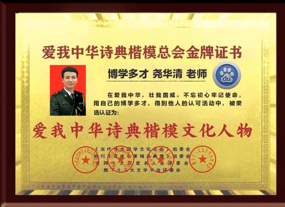 百度名家荣选为:「爱我中华诗典楷模文化人物作者名单」