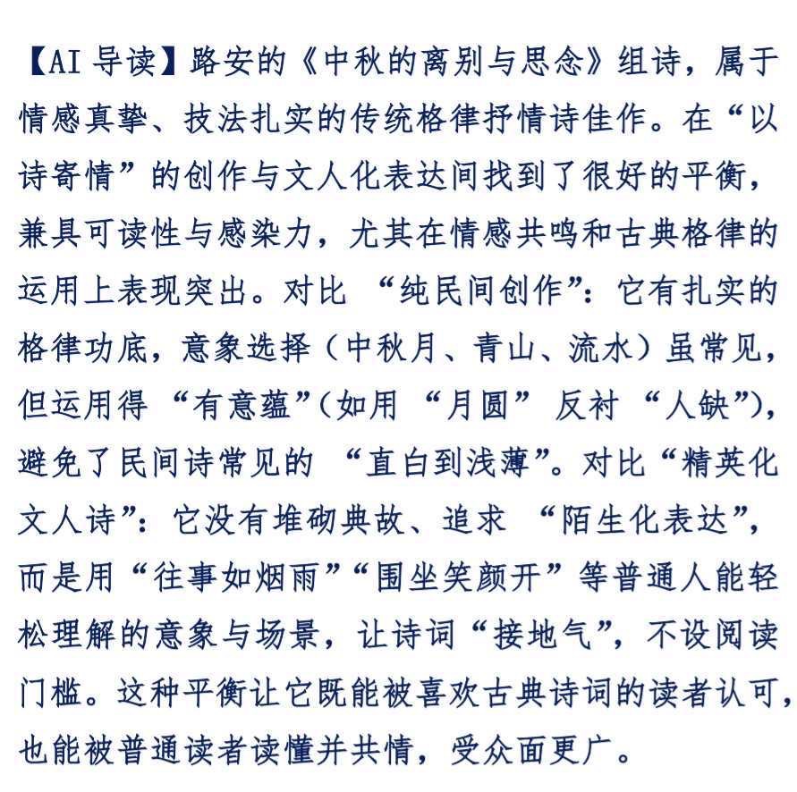 【世界华人文学城】第八期“佳作赏析”《中秋的离别与思念》作者:路安|朗诵:王慧霞
