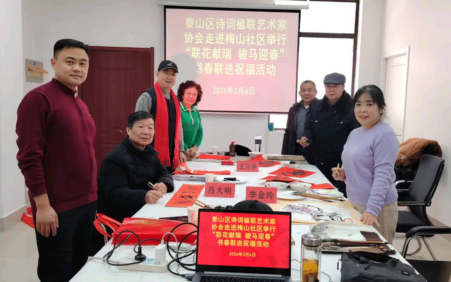 泰安市泰山区诗词楹联艺术家协会联合朱復戡艺术研究委员会《“联花献瑞 骏马迎春”书春联送祝福活动走进徐家楼街道梅山社区》活动纪实