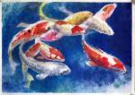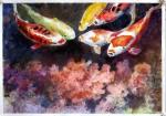 题画家王可水彩画巜锦鲤》三首/作者:赵铁军