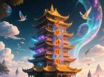 《东方仙境绮梦:水墨鎏金晨,瀑畔木屋藏诗韵》