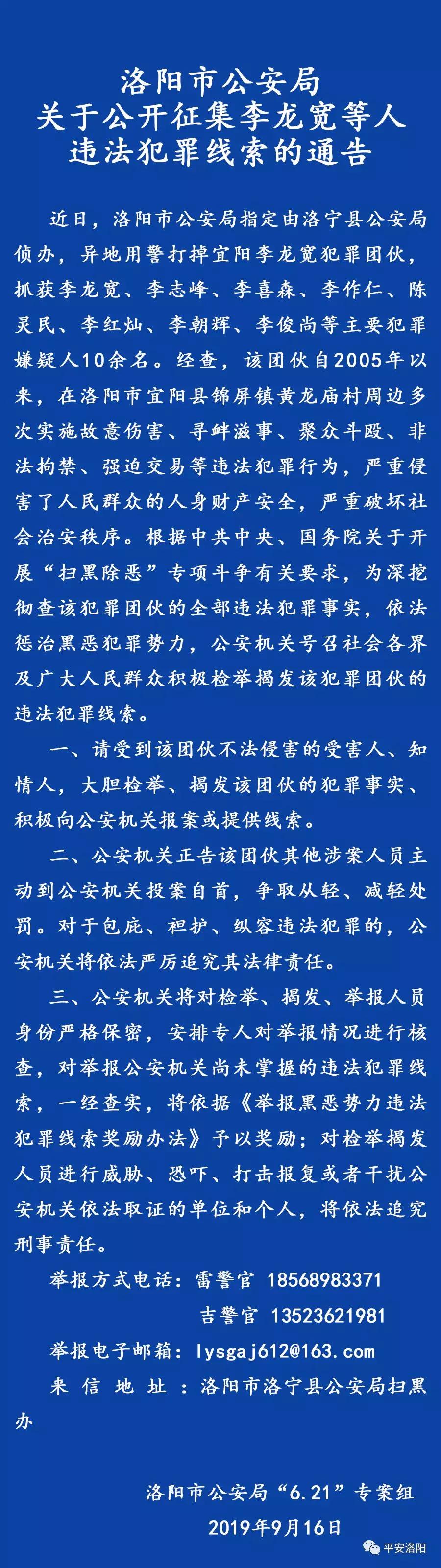 关于公开征集李龙宽等人违法犯罪线索的通告