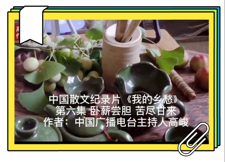 中国散文纪录片【我的乡愁】 第⑥集 《卧薪尝胆 苦尽甘来》 作者/中国广播电视台主持人高峻