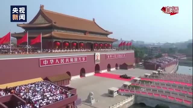 阅兵新曾仪式向国旗党旗军旗献注目礼