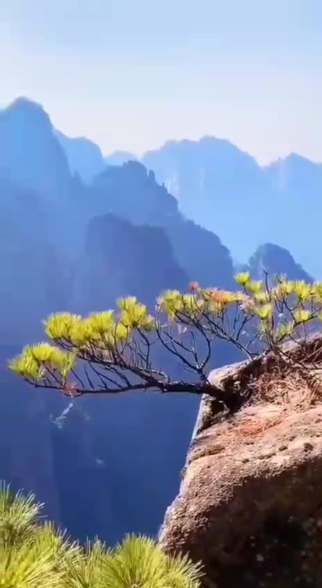 松立巅端风伴舞,天然画卷此间藏。