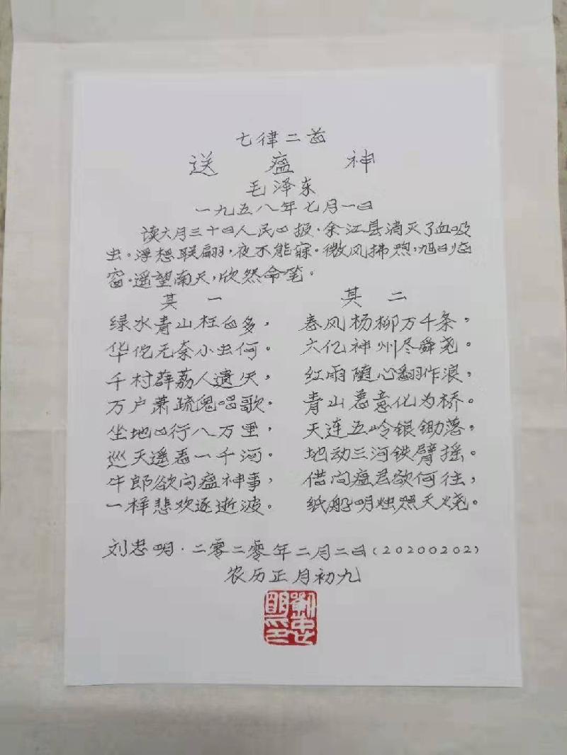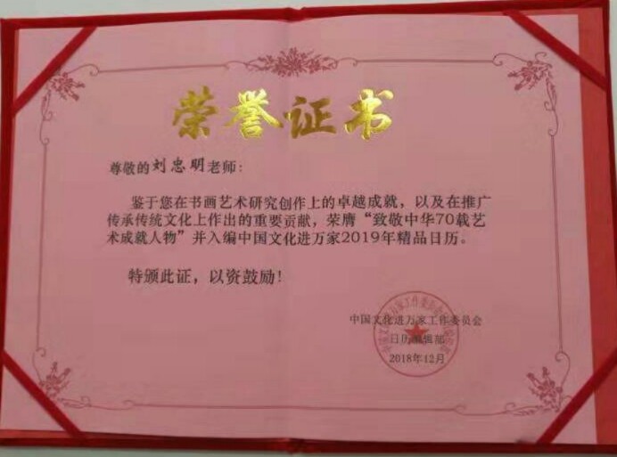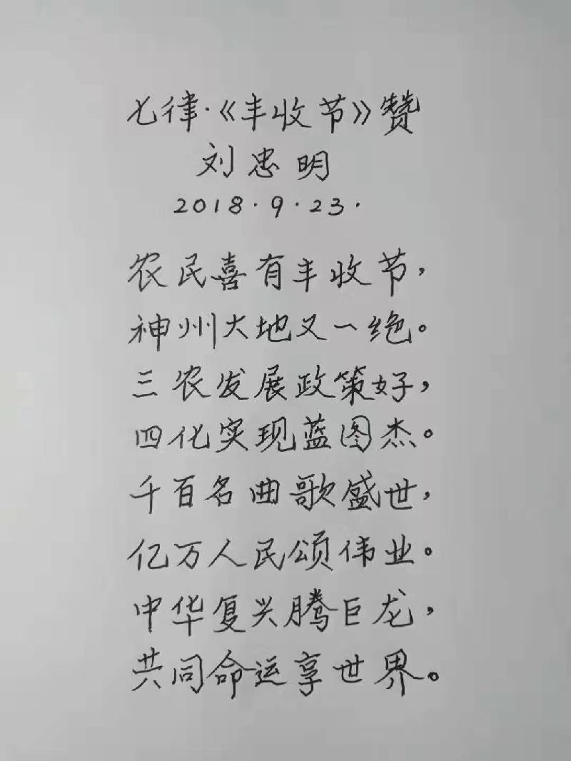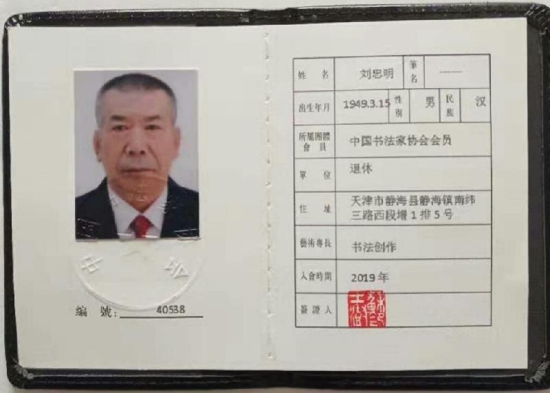 刘忠明,男,1949 年生于天津市静海区。中学语文高级教师。续修《静海县志》编辑、校队,《静海区年鉴》编辑。静海作家协会会员,中国诗歌学会会员,华夏博学国际文化交流中心会员。静海书法家协会会员,无锡锡梅诗书画院常务理事。华夏夕阳红书画艺术院理事、签约书画家,中国书画家交流协会常务理事,全国名人书画艺术界联合会委员,中国书画家联合会副主席,中国硬笔书法协会会员,中国书画咨询网签约书画家,中国诗书画家网艺术家委员会副会长,九州枫林国际书画艺术院理事,世界华人实力书画家协会理事、书法专业委员会副主委。