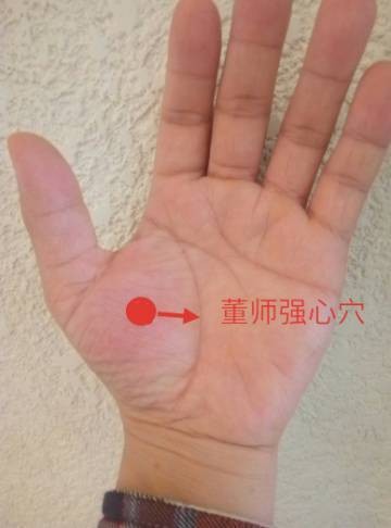 董师把大鱼际的中点定为强心穴,说可以代替附子以温通心阳。对于需要用附子强心的患者,董师常辅以针刺强心穴。