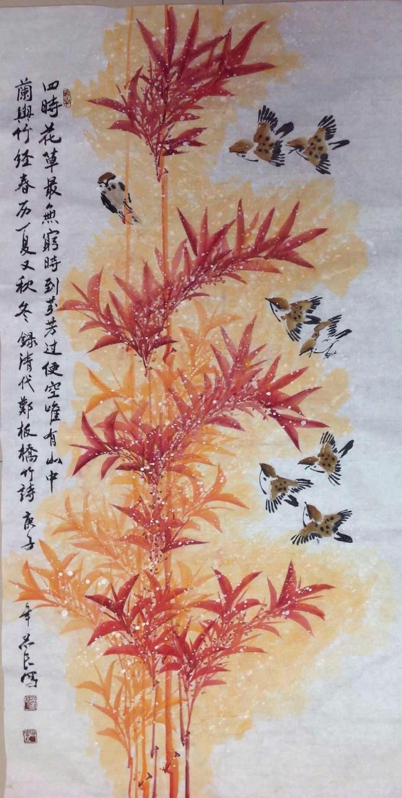 詹品良,1959年生于天津,汉族,师从李苦禅大师再传弟子高景林先生学习书画。2010年受邀为世界华人实力书画家协会天津分会成立庆典评委。2012年担任北京大本宗书画艺术院秘书长及副院长,天津市东丽区滨海画院理事。2015年5月经文化部华夏文化遗产研究院、评审委员会、书画委员专家考核评定认定中国书画画家资格。2018年3月担任全国名人书画艺术界联合会常务委员等职。2018年10月根据艺术成就,经中书协、中美协、清华美院资深专家评审,评定为国礼书画家资格。2018年10月隆重敦聘为无锡锡梅诗书画院常务理事。2018年10月作品《竹林有趣》被中国文化遗产保护研究院,文化艺术发展委员会永久收藏。2018年荣膺第五届中国廉政文化书画展优秀作品奖。2019年中国书画春晚榜样大拜年金奖。2019年国庆70周年献礼活动榜样人物。