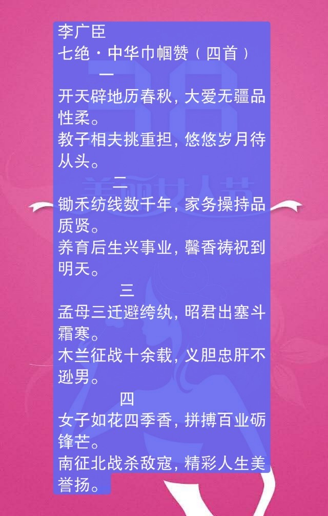 【泛舟韵海】欢度丽人节(诗词精选六)