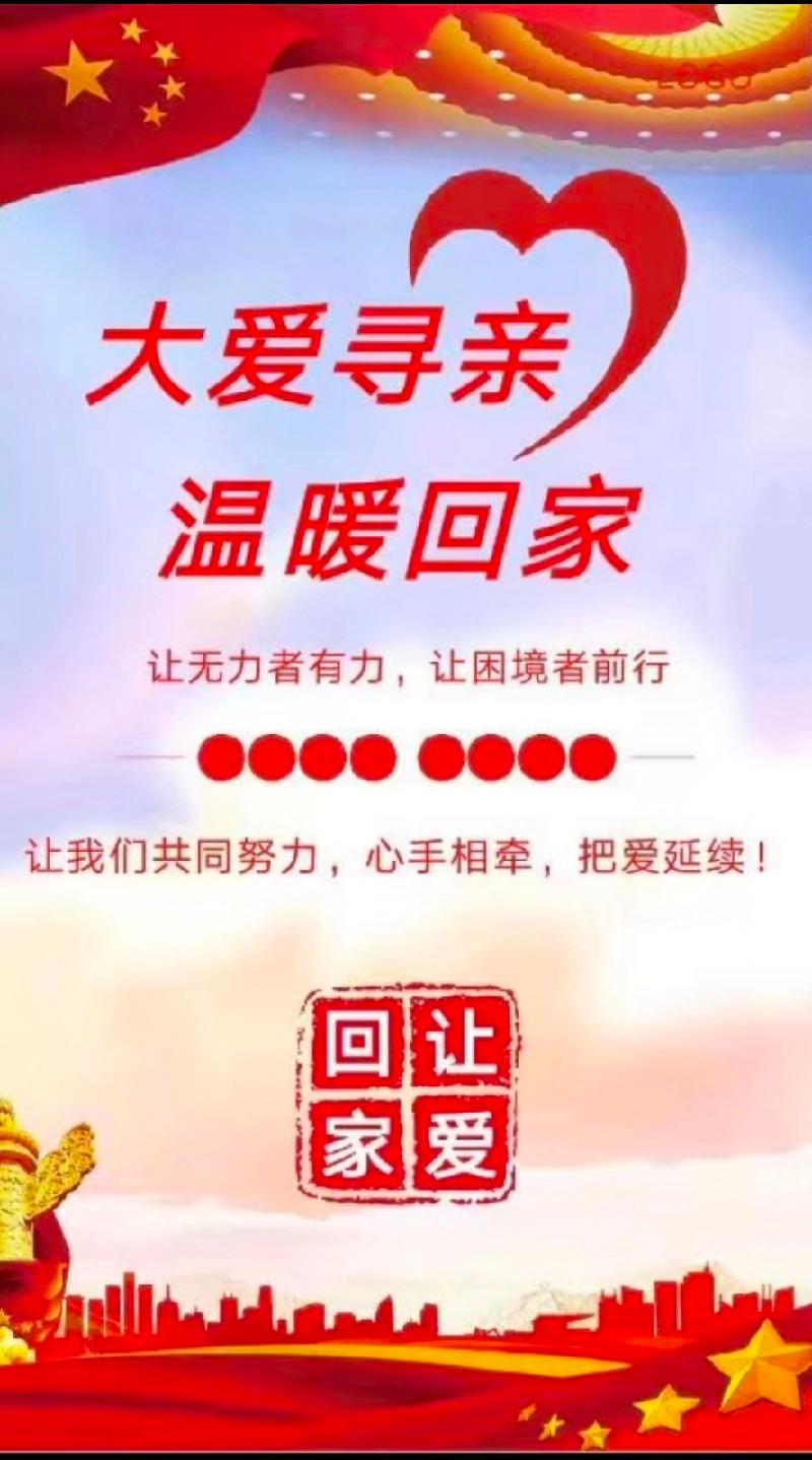 为缘寻找,为爱坚守!让爱回家,不抛弃,不放弃!愿人人付出爱,人人得到爱,人人传递爱!关爱弱势群体,共筑和谐社会!《让爱回家寻亲网》为帮助被拐失联失踪人员寻家以及家人寻找被拐失联失踪人员提供了一个平台,充分利用互联网的优势,帮助更多失散的家庭团圆!