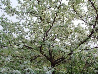 棠梨,也是乔木,成年树高五至八米,因为木质坚硬细密不起渣,是我们家庭制作案板和印章的上等材料,谁家如果有块棠梨木制作的案板,有一枚棠梨木雕刻的印章,足以成为当时炫耀的资本。棠梨树枝除了可以烧柴之外,我们小时候用山里的葛条在枝条的根部绑扎起来挂在门前的树上或家院的墙上,把削好的柿饼插在刺上晾晒,通风透光、不怕下雨、不用翻晒,老百姓也特别喜欢。而棠梨的花,制作成食品,也是可口的美味。我们用新鲜的棠梨花放进滚烫的开水里稍焯片刻,除去苦涩味,就可以做为商品出卖。棠梨花亦可炒食和凉拌,采摘一些新鲜的棠梨花,用做炒豆豉、韭菜、火腿,虽然谈不上山珍海味、美味佳肴,但却让人食用之后回味无穷。所以,为了一年四季都能享用到这道原汁原味的花食产品,许多家庭都会采摘一些棠梨花,然后用塑料袋分袋包装,放在冰箱里冷藏,用作冬天居家赋闲和招待客人的美食。