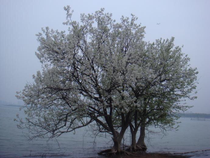 棠梨,不择环境、气候和土壤,生于荒山野外、长于山谷沟壑,无论天寒地冻、风吹日晒,却凭借深扎土里的根系,年复一年、月复一月、日复一日,生机勃勃,茁壮成长,开花结果。清明前后,陡峭的山坡上、幽幽的峡谷里,棠梨带刺的枝条上,便悄然吐出一咕噜的花骨朵,一枝枝、一树树、一坡坡,如白云一般的棠梨花开了。洁白如绢的花瓣,细细地银丝勾勒出的花蕊,还有那宜人的花香轻轻地飘荡在整个山坡,开白了我的整个心海。它从未中断过对爱的执着追求和向往,把毕生精力都默默无闻奉献给了百花盛开的大地,顽强地展示着它的风采。置身于此,犹如仙境云海,清香袭人。观赏着一树树争相怒放的棠梨花,情不自禁地会想起“忽如一夜春风来,千树万树梨花开”、“无风杨柳漫天絮,不雨棠梨满地花”这优美的诗句来!还会想起棠梨救刘秀的悲壮故事来!更会想起《召公息棠荫》的美丽传说来!