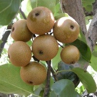 棠梨,除了它的药用价值之外,还有一个重要的作用就是嫁接梨树的砧(zhēn)木。记得小时候老家的埝头上、坟场上,地里的石头笼上,到处都是由棠梨树嫁接成的小梨树。这个小梨树不是说梨树长得小,而是因为梨的果实不大,名子就叫小梨的缘故。小梨,又名土梨,它是家乡最早的当家品种。除了小梨之外,偶有嫁接不多的秤锤梨。梨小的时候,多数吃着无味、木渣,尤其是小梨,还有点涩巴,只有成熟了,才会酥脆可口、或酸或甜、有汁有味,也是我们放牛时,用做就馍吃的最爱。因为小梨树多,我们村里还有一个山沟叫梨树沟呢!