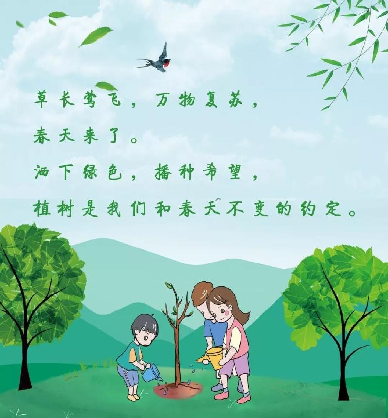 挥锹种树忙,绿化美家乡。