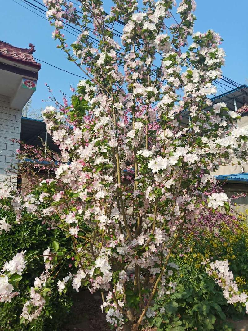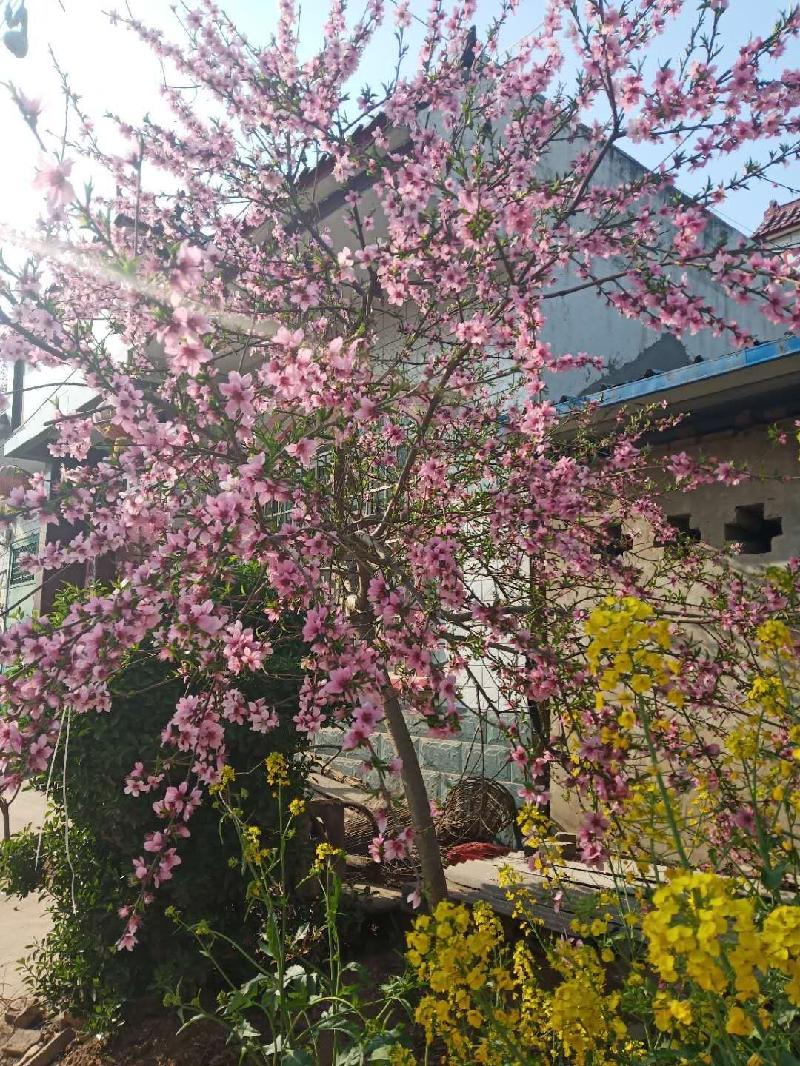 千枝披雪展妍素,万朵含霖吐粉红。