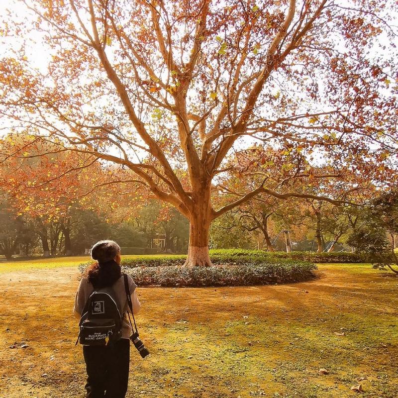 高大梧桐树下走