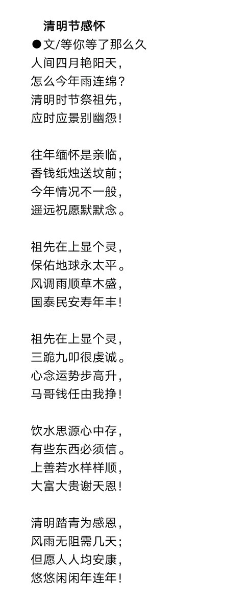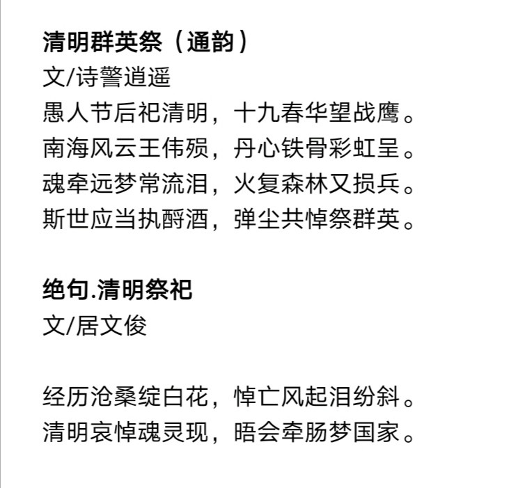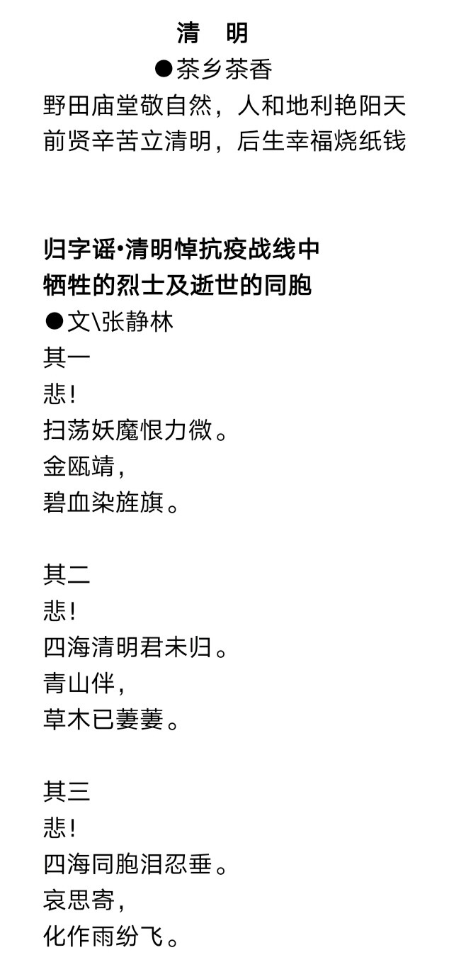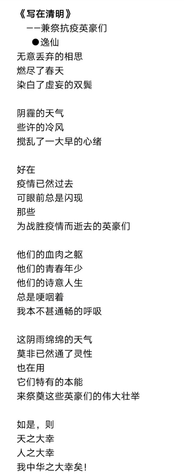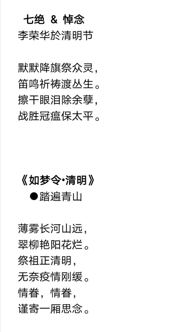 \ 清明节,缅怀疫情中牺牲的烈士和 逝世的同胞/朋友圈诗歌选载