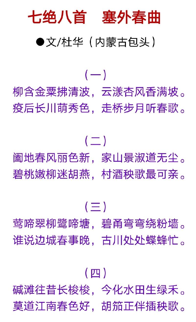 \ 〈七绝八首 塞外春曲 〉文/杜华(内蒙古包头)